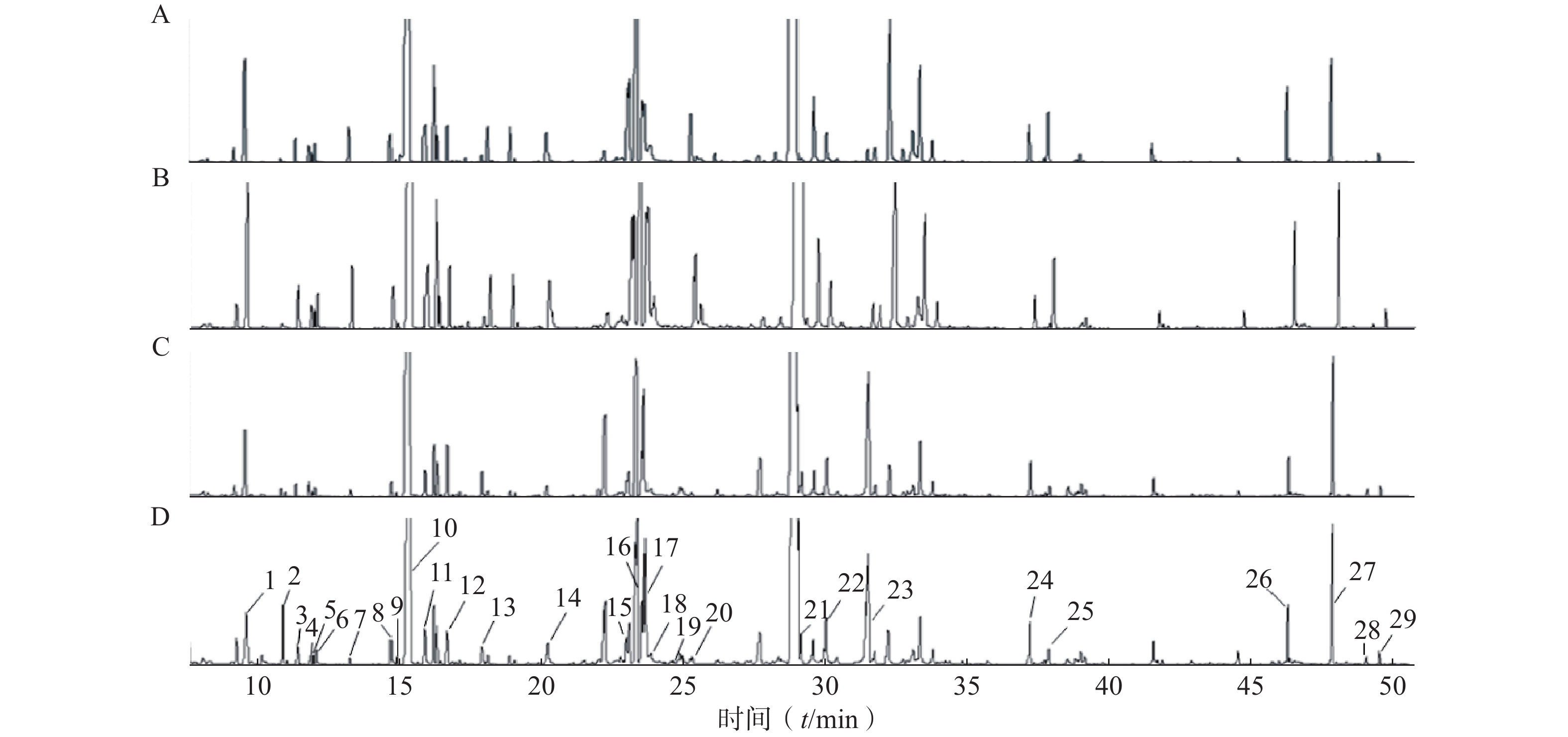 目的 建立黄连提取物的高效液相色谱法(HPLC)指纹图谱及其体外抑制金黄色葡萄球菌作用的谱-效关系,为探索黄连抑菌作用的药效物质基础提供依据。 方法 分别以60%乙醇、1%盐酸甲醇以及水为提取溶剂,采用超声、加热回流以及浸泡等提取方法制备9种黄连提取物;建立提取物HPLC指纹图谱;以金黄色葡萄球菌为对象,根据培养基微量稀释法采用酶标仪测定吸光度,计算抑菌率;运用灰色关联分析法(GRA)对谱-效数据进行关联分析。 结果 建立9种黄连提取物的HPLC指纹图谱,确定9个共有特征指纹峰,通过对照品对比指认其中5个峰;GRA分析显示:9个共有峰成分与抑菌作用的关联度均在0.559 1~0.803 3之间;其中3号峰、8号峰(盐酸巴马汀)、9号峰(盐酸小檗碱)为正相关,其中9号峰(盐酸小檗碱)的相关度最高,其关联度值为0.803 3。 结论 通过对黄连提取物谱-效关系进行研究,以盐酸小檗碱为主的生物碱类物质可能是黄连抑制金黄色葡萄球菌的主要药效物质基础。
