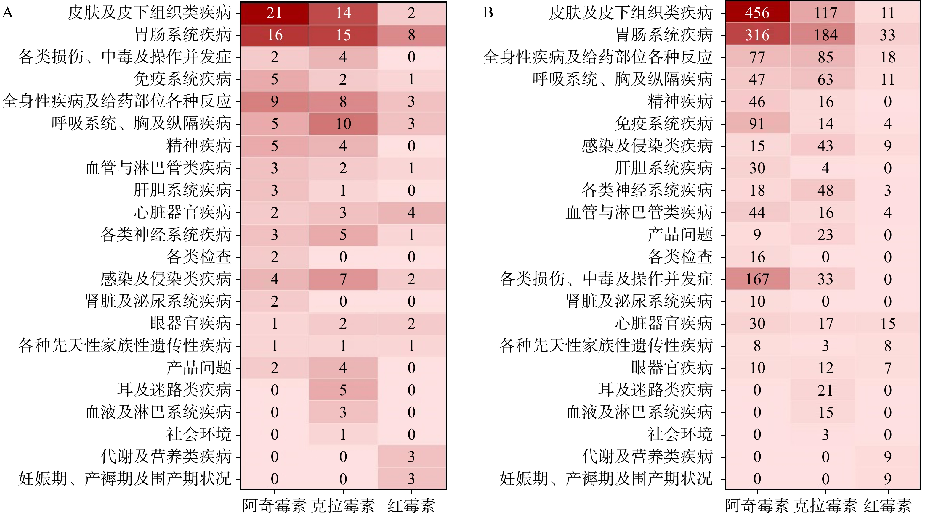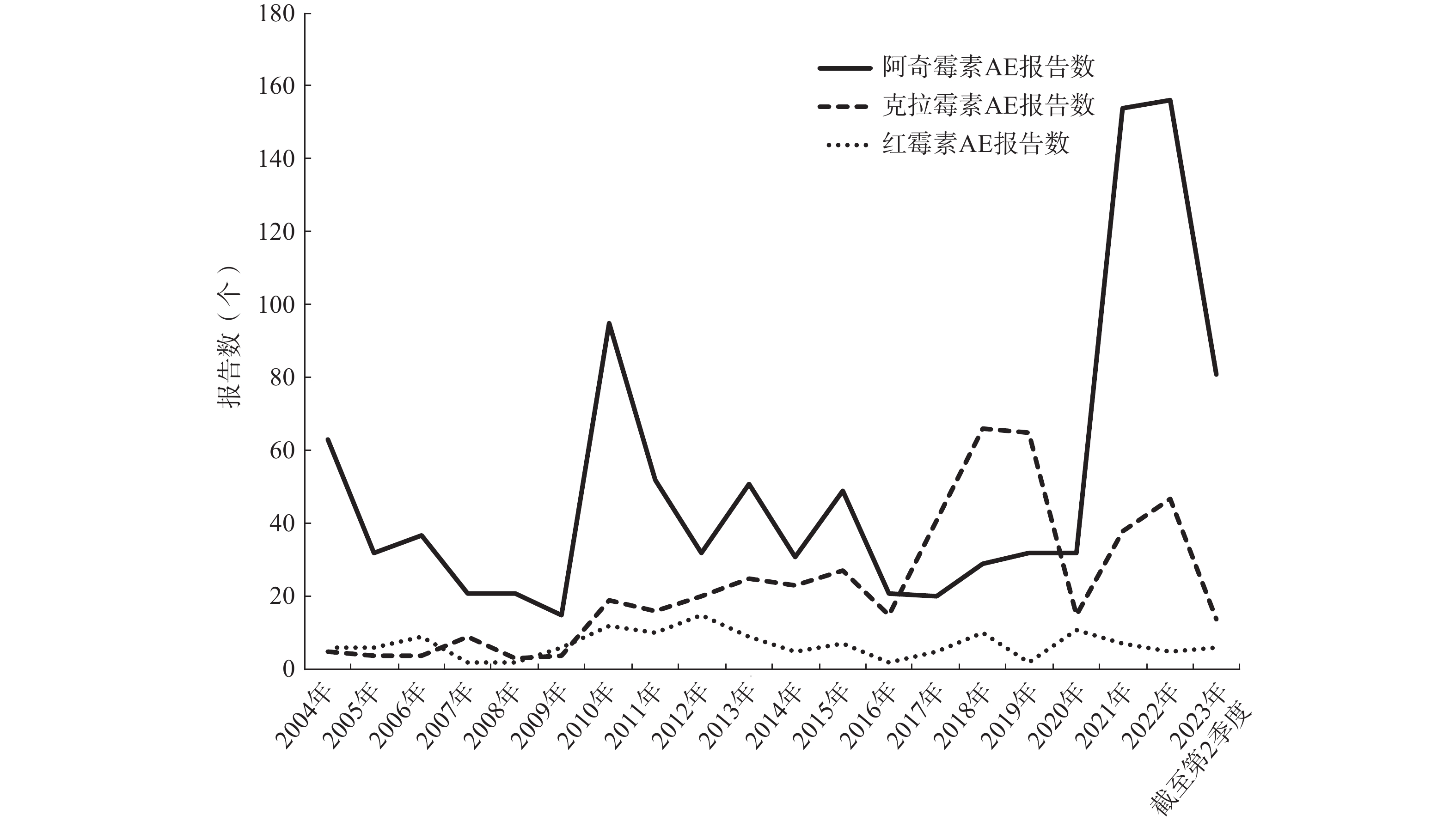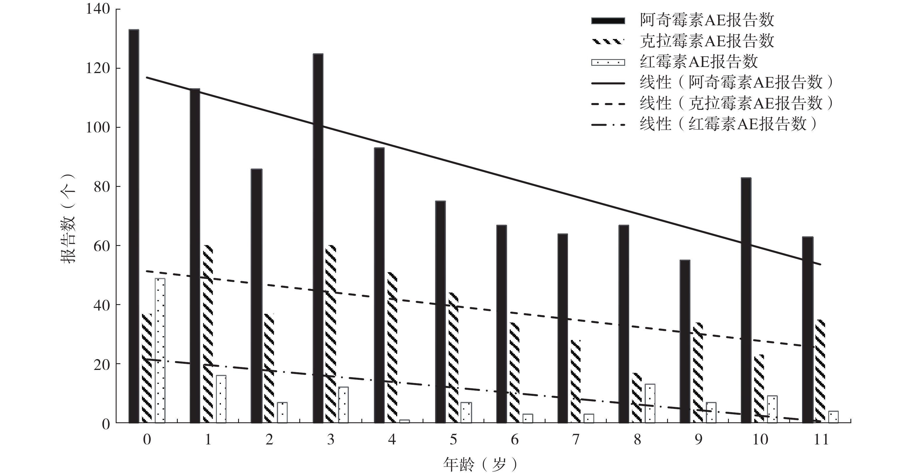目的 挖掘儿童使用大环内酯类药物(阿奇霉素、克拉霉素与红霉素)的不良事件(adverse event,AE)信号,为临床安全用药提供参考。 方法 从美国FDA不良事件报告系统(FAERS)数据库中提取2004年第1季度至2023年第2季度12岁以下儿童数据,采用报告比值比法(reporting odds ratio,ROR)和贝叶斯置信区间递进神经网络法(Bayesian confidence propagation neural network,BCPNN)对3种大环内酯类药物进行AE信号挖掘,重点分析对比3种药物的AE差异。 结果 FAERS数据库共检索到12岁以下儿童的报告1 615份,其中,阿奇霉素1 024份、克拉霉素460份、红霉素131份。阿奇霉素、红霉素中男生报告数多于女生,克拉霉素女生报告数多于男生。在已知给药途径中,三者均是口服给药报告数最多。在报告的AE结局中,阿奇霉素和克拉霉素以其他严重AE为主,红霉素则是以住院和其他严重AE为主。三者AE报告数随年龄增长呈下降趋势,0~3岁报告数较多。经ROR法和BCPNN法信号检测,阿奇霉素风险信号86个,克拉霉素风险信号91个,红霉素风险信号34个。信号累及22个系统器官分类(system organ class,SOC);阿奇霉素主要集中在皮肤及皮下组织类疾病(n=21);克拉霉素主要集中在胃肠系统疾病(n=15);红霉素主要集中在胃肠系统疾病(n=8)。检测到中强及以上风险信号24个,阿奇霉素13个、克拉霉素9个、红霉素2个。 结论 3种药物所致AE不同,不同系统风险性不同。临床治疗儿童肺炎支原体肺炎等应考虑药物在不同系统的风险性,进行个体化给药。