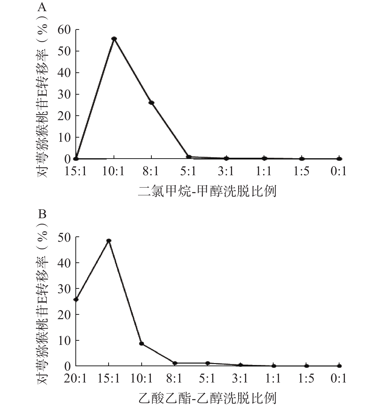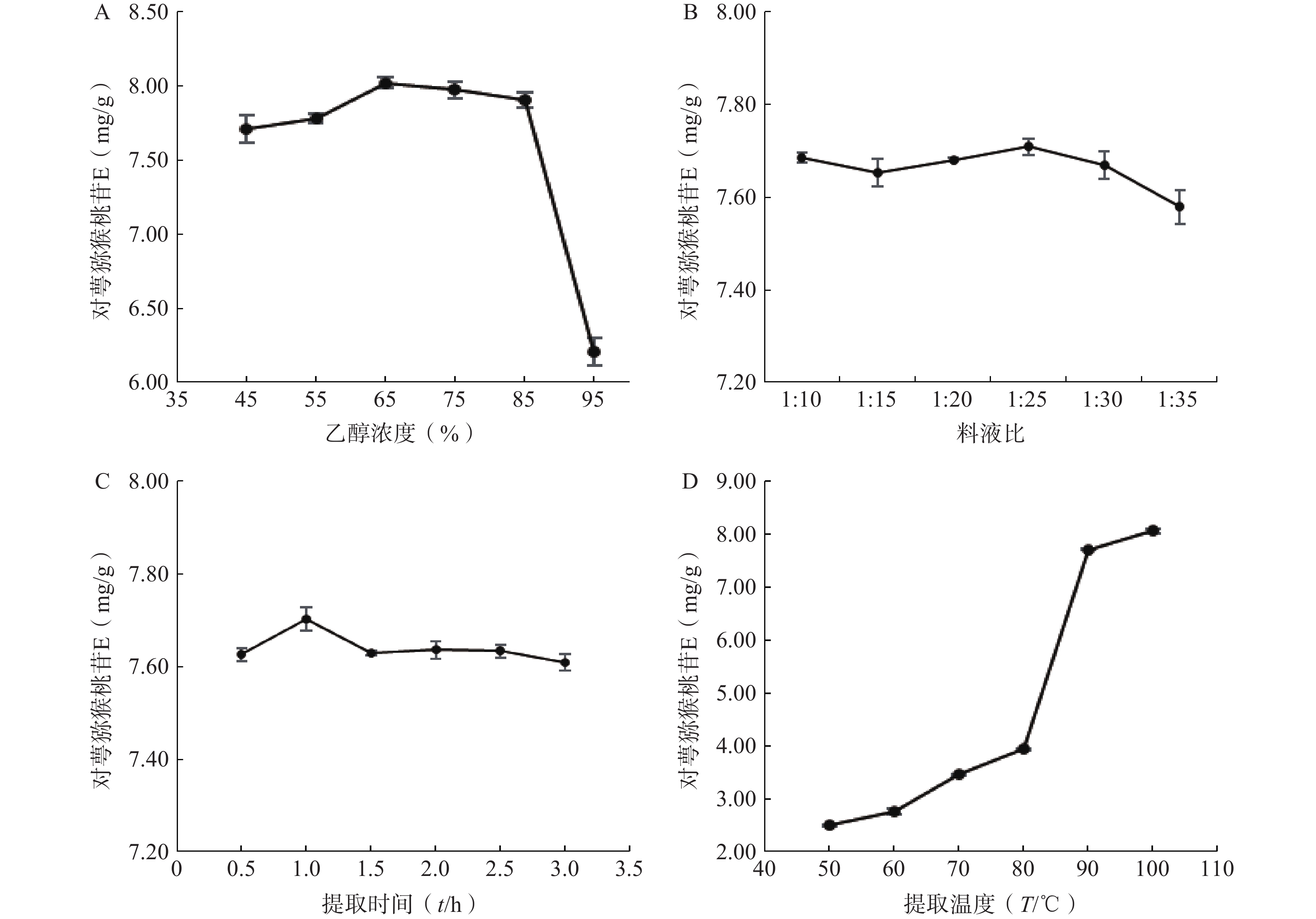 目的 优选对萼猕猴桃苷E的提取分离纯化工艺。 方法 以对萼猕猴桃苷E的含量为指标,采用单因素考察结合正交试验确定对萼猕猴桃苷E的最佳提取工艺;通过优化大孔吸附树脂柱、硅胶柱和ODS柱的色谱条件,对提取物进行分离纯化。 结果 对萼猕猴桃苷E的最佳提取工艺为:以25倍量的55%乙醇95℃加热回流1 h。优化的分离纯化工艺为:D101型大孔树脂柱以50%乙醇洗脱7 BV;硅胶柱以乙酸乙酯-乙醇10∶1洗脱5 BV;ODS柱重复纯化50%甲醇洗脱部分,最终得到对萼猕猴桃苷E单体化合物。整个工艺中,对萼猕猴桃苷E的转移率为53.70%,得率为0.35%,纯度达99.9%。 结论 该工艺稳定可行,可为对萼猕猴桃苷E的开发利用提供物质基础。