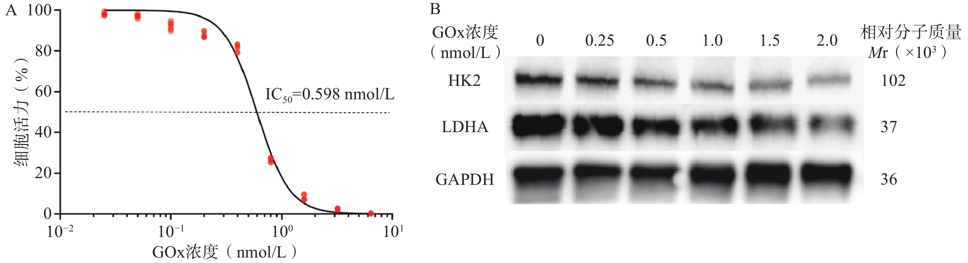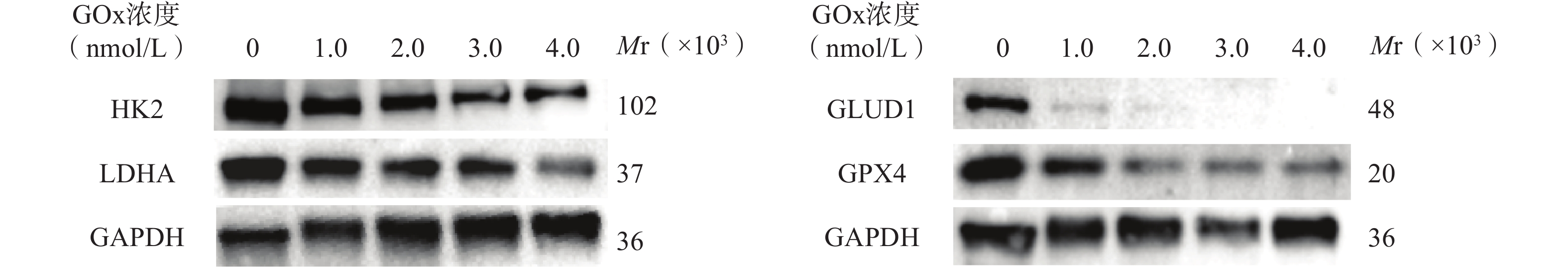目的 构建载葡萄糖氧化酶(glucose oxidase, GOx)的纳米凝胶(GONGs)并优化处方,考察GONGs对胶质瘤细胞Warburg效应的抑制效果。 方法 合成响应性聚合物(HAM),自组装制备GONGs并进行表征,荧光分光光度法测定GONGs的包封率和载药量,考察细胞毒性和溶血性,Western blot考察GONGs对胶质瘤细胞Warburg效应的抑制及氧化损伤作用。 结果 以1∶10的投药比制备GONGs,粒径140.3 nm、Zeta 电位−27.2 mV。GONGs相比GOx, hUVEC细胞IC50由2.150 nmol/L提高至74.86 nmol/L,显著减少溶血。GOx浓度为2.0 nmol/L的GONGs能有效抑制胶质瘤细胞糖酵解相关蛋白己糖激酶2(HK2)和L-乳酸脱氢酶(LDHA)的表达,同时抑制谷氨酰胺代谢。 结论 GONGs具有GOx的高载药率,显著减小了GOx细胞毒性,对胶质瘤细胞Warburg效应有显著抑制作用,并能诱导氧化损伤。