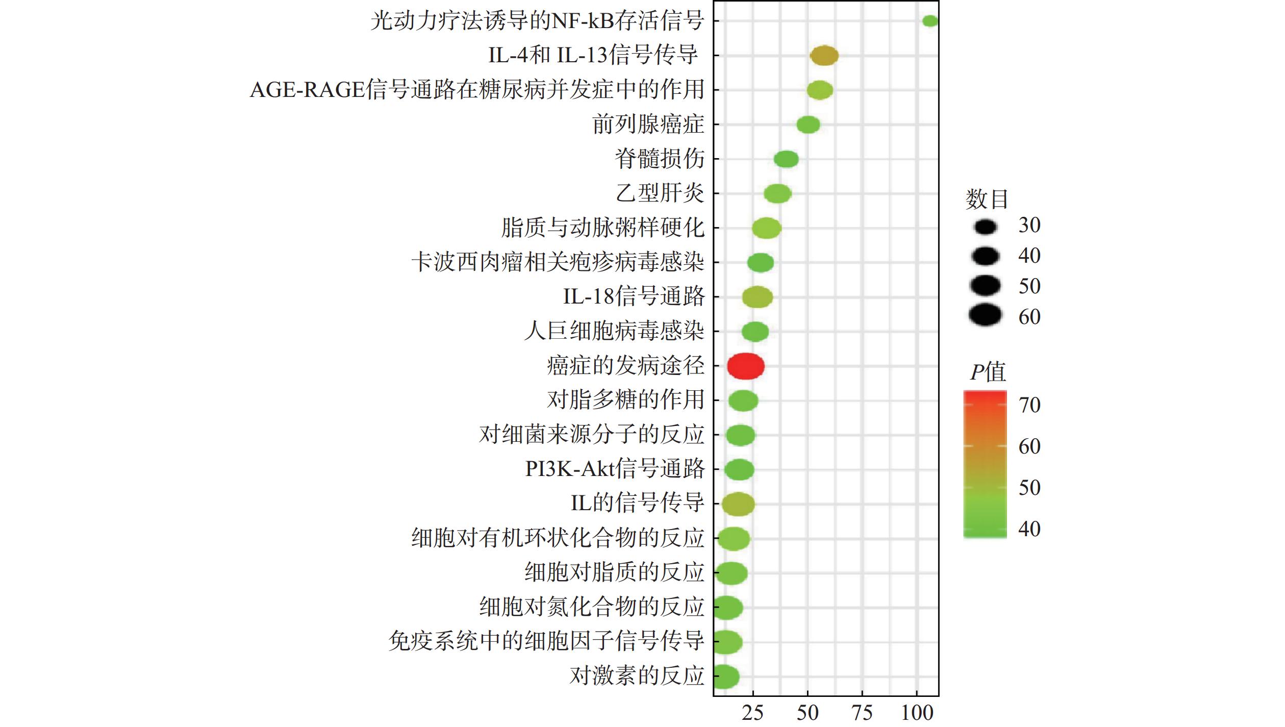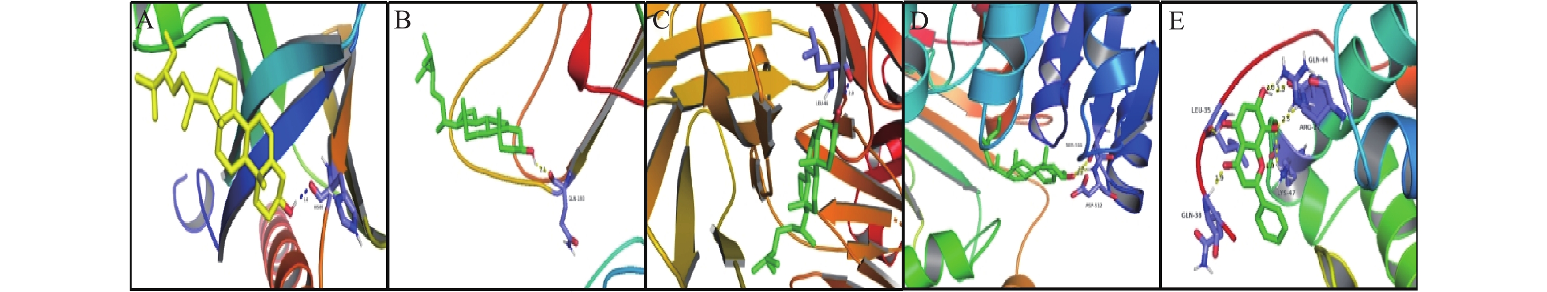 目的  运用网络药理学和分子对接技术探讨制痂酊治疗Ⅱ度烧伤的作用机制。  方法  从中药系统药理学数据库与分析平台(TCMSP)、GeneCards数据库和OMIM数据库筛选制痂酊的有效成分及烧伤的相关靶点;通过Cytoscape软件绘制相关靶点图以及疾病网络;用Metascape平台进行潜在靶点进行基因功能(GO)富集分析和基因百科全书(KEGG)通路分析;用AutoDockTools进行分子对接。  结果  筛出有效成分19个,靶点交集179个。主要涉及无机物质反应、细胞对氮化合物反应以及对外来异种刺激的响应,膜筏、囊泡腔和内质网腔等生物学过程。包括AGE-RAGE、PI3K-Akt、IL-17及TNF信号通路等。核心靶点为AKT1、TNF、IL-6、甘油醛-3-磷酸脱氢酶(GAPDH)、TP53等。制痂酊活性成分与多个靶点对接,其中β-谷甾醇与AKT1、GAPDH、TP53有强烈的结合活性。  结论  制痂酊中槲皮素、山柰酚、汉黄芩素、β-谷甾醇等核心活性成分可能通过作用于AKT1、GAPDH、TP53、IL-6等靶点,调控AGE-RAGE、PI3K-Akt、IL-17、TNF等信号通路,辅助缓解烧伤。本研究为明确制痂酊治疗烧伤类疾病作用机制奠定了理论基础。