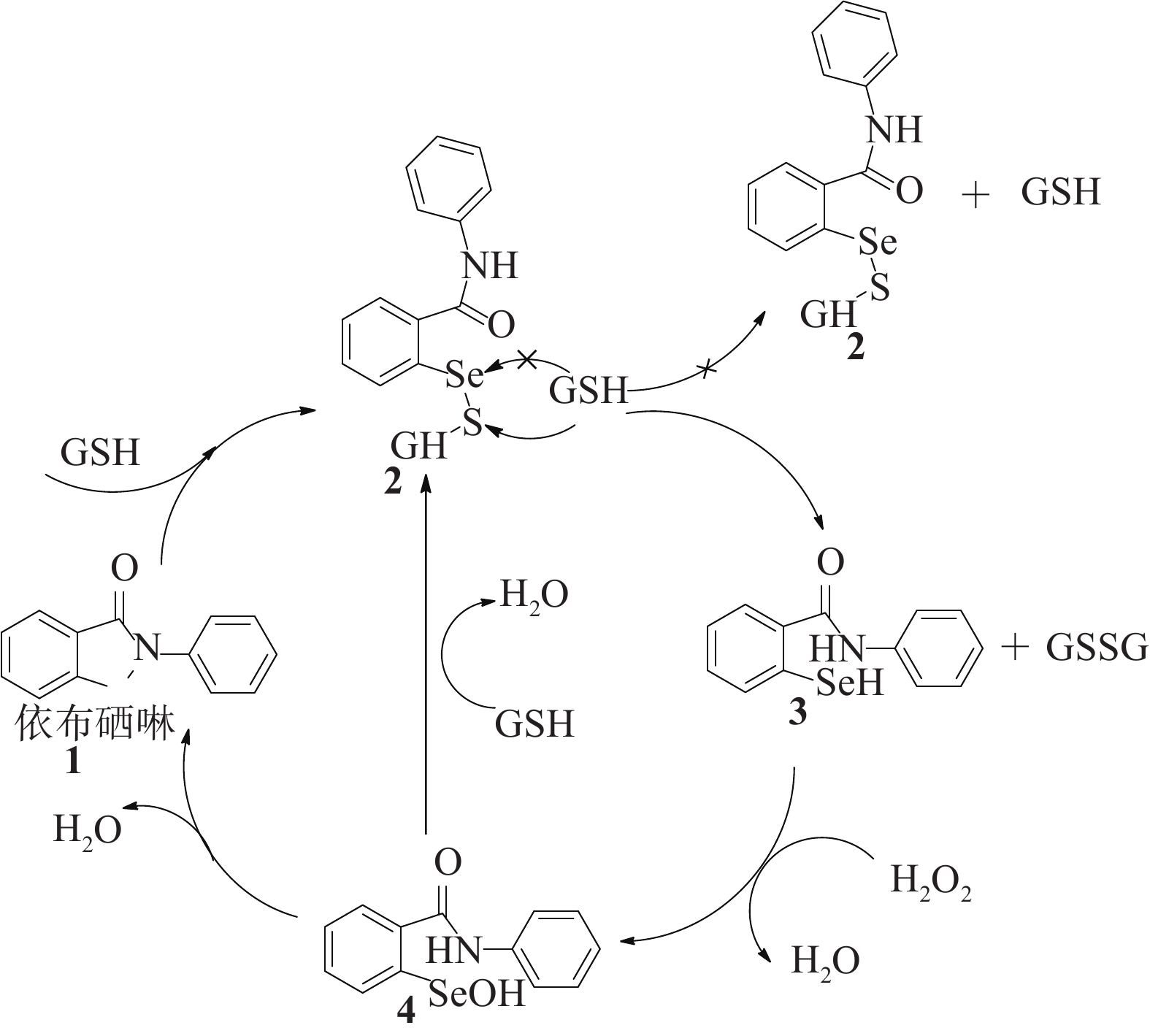 谷胱甘肽过氧化物酶(GSH-Px)是一种关键的硒酶,可以保护机体免受氧化损伤。研究者设计并合成了一系列小分子有机硒化合物作为GPx的功能模拟物,其中,异硒唑酮类化合物研究最为广泛。以该类化合物依布硒啉(ebselen)为代表,总结和讨论异硒唑酮类化合物在体内模拟GSH-Px活性的催化机制,以及它在脑卒中、感音神经性耳聋和耳鸣、难治性抑郁症(TRD)和新型冠状病毒(COVID-19)等相关疾病中的治疗作用,并综述其化学合成方法。