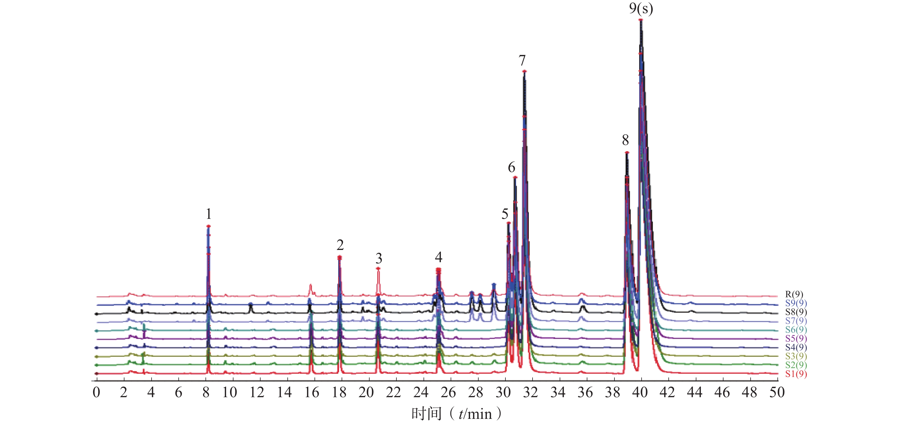 目的 建立黄连提取物的高效液相色谱法(HPLC)指纹图谱及其体外抑制金黄色葡萄球菌作用的谱-效关系,为探索黄连抑菌作用的药效物质基础提供依据。 方法 分别以60%乙醇、1%盐酸甲醇以及水为提取溶剂,采用超声、加热回流以及浸泡等提取方法制备9种黄连提取物;建立提取物HPLC指纹图谱;以金黄色葡萄球菌为对象,根据培养基微量稀释法,采用酶标仪测定吸光度,计算抑菌率;运用灰色关联分析法(GRA)对谱-效数据进行关联分析。 结果 建立9种黄连提取物的HPLC指纹图谱,确定9个共有特征指纹峰,通过对照品对比指认其中5个峰;GRA分析显示:9个共有峰成分与抑菌作用的关联度均在0.559 1~0.803 3之间;其中3号峰、8号峰(盐酸巴马汀)、9号峰(盐酸小檗碱)为正相关,其中9号峰(盐酸小檗碱)的相关度最高,其关联度值为0.803 3。 结论 通过对黄连提取物谱-效关系进行研究,以盐酸小檗碱为主的生物碱类物质可能是黄连抑制金黄色葡萄球菌的主要药效物质基础。