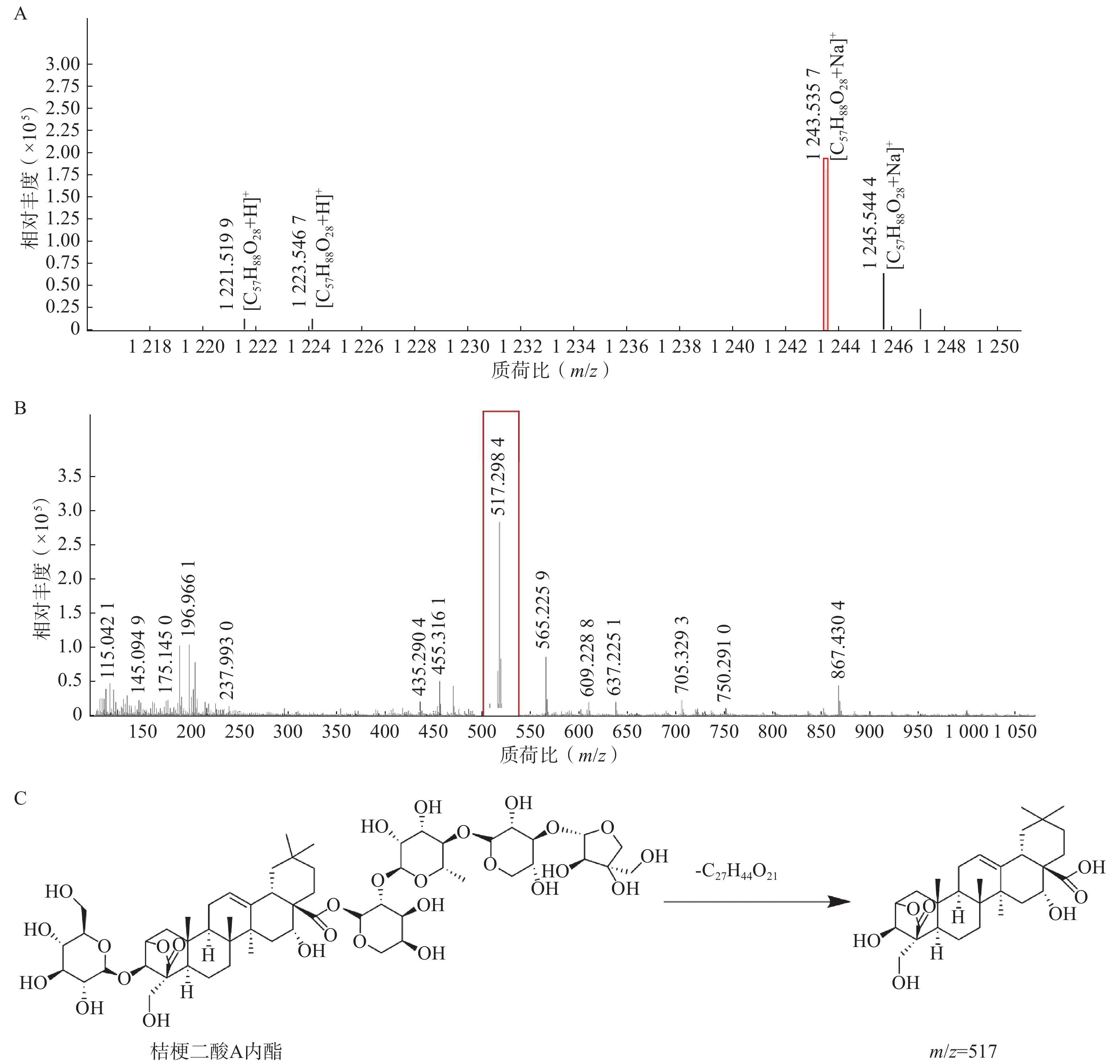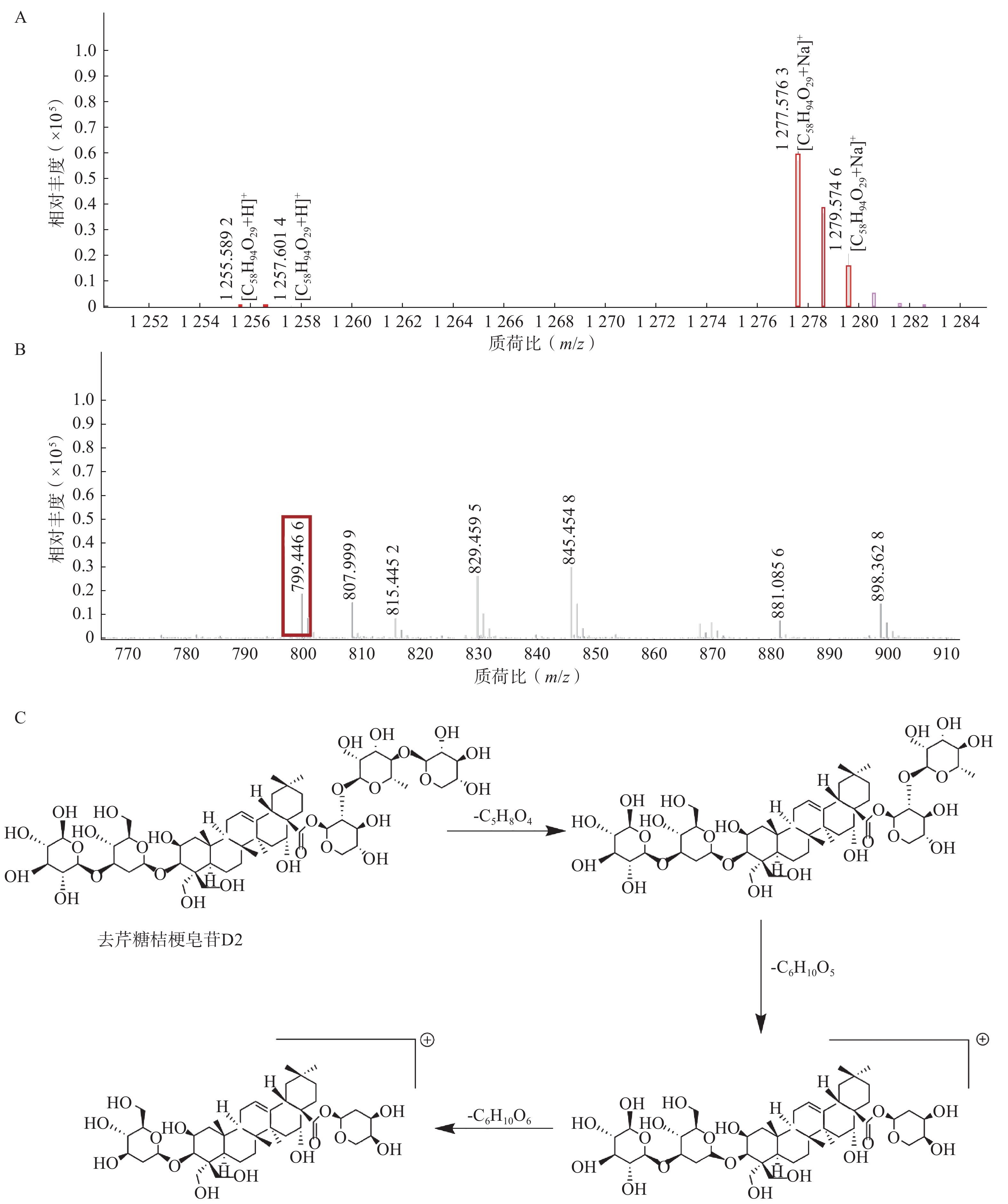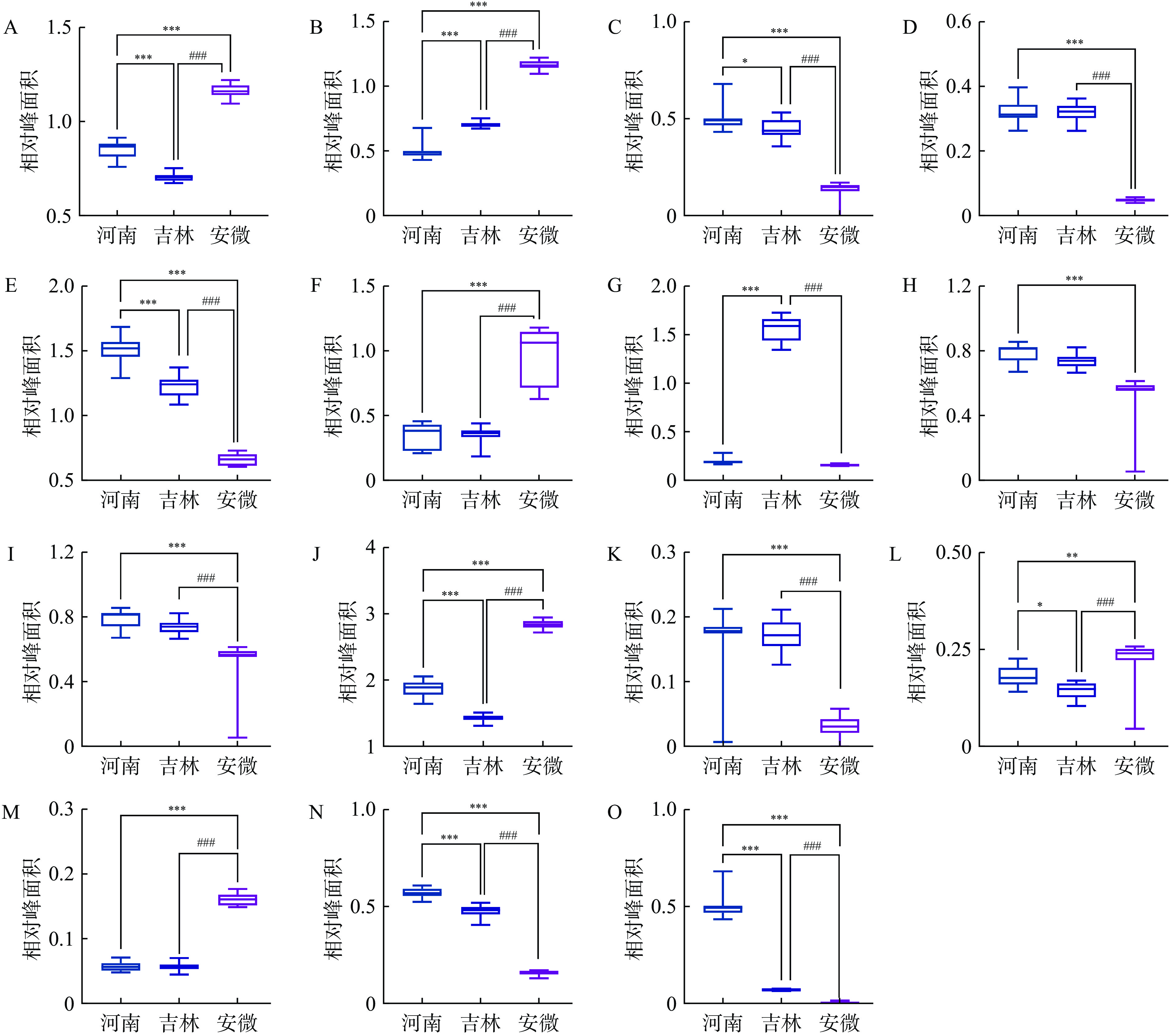 目的 建立一种高效、灵敏的桔梗皂苷类成分鉴定分析技术体系,系统比较不同产地桔梗所含皂苷类成分的差异,以期为桔梗药材优质资源筛选、道地性评价以及标准化质量控制体系提供科学的参考。 方法 以安徽、河南、吉林3个产地共45批桔梗药材(每个产地15批)为研究对象,基于超高效液相色谱-四极杆-飞行时间串联质谱(UHPLC-Q-TOF/MS)技术对皂苷类成分进行定性鉴别及半定量分析,同时结合主成分分析(PCA)、偏最小二乘判别分析(PLS-DA)两种多元统计方法解析不同产地桔梗的皂苷类成分差异。 结果 从3个产地桔梗中共鉴定出28种皂苷类成分,PCA分析表明河南桔梗与吉林桔梗皂苷类成分差异较小,安徽桔梗与二者皂苷类成分存在较大差异;PLS-DA进一步筛选出15种主要差异化合物,其中3''-O-乙酰远志皂苷D2、桔梗皂苷H等6种成分在安徽桔梗中的含量高于河南桔梗、吉林桔梗;桔梗二酸A内酯在吉林桔梗中的含量最高;桔梗皂苷D3、远志皂苷J、远志皂苷D等在河南桔梗中的含量更优。 结论 本研究明确了3大产区桔梗的核心成分差异特征,为桔梗优质药材资源筛选、道地性成因解析以及标准化质量控制体系构建提供了重要的理论依据。