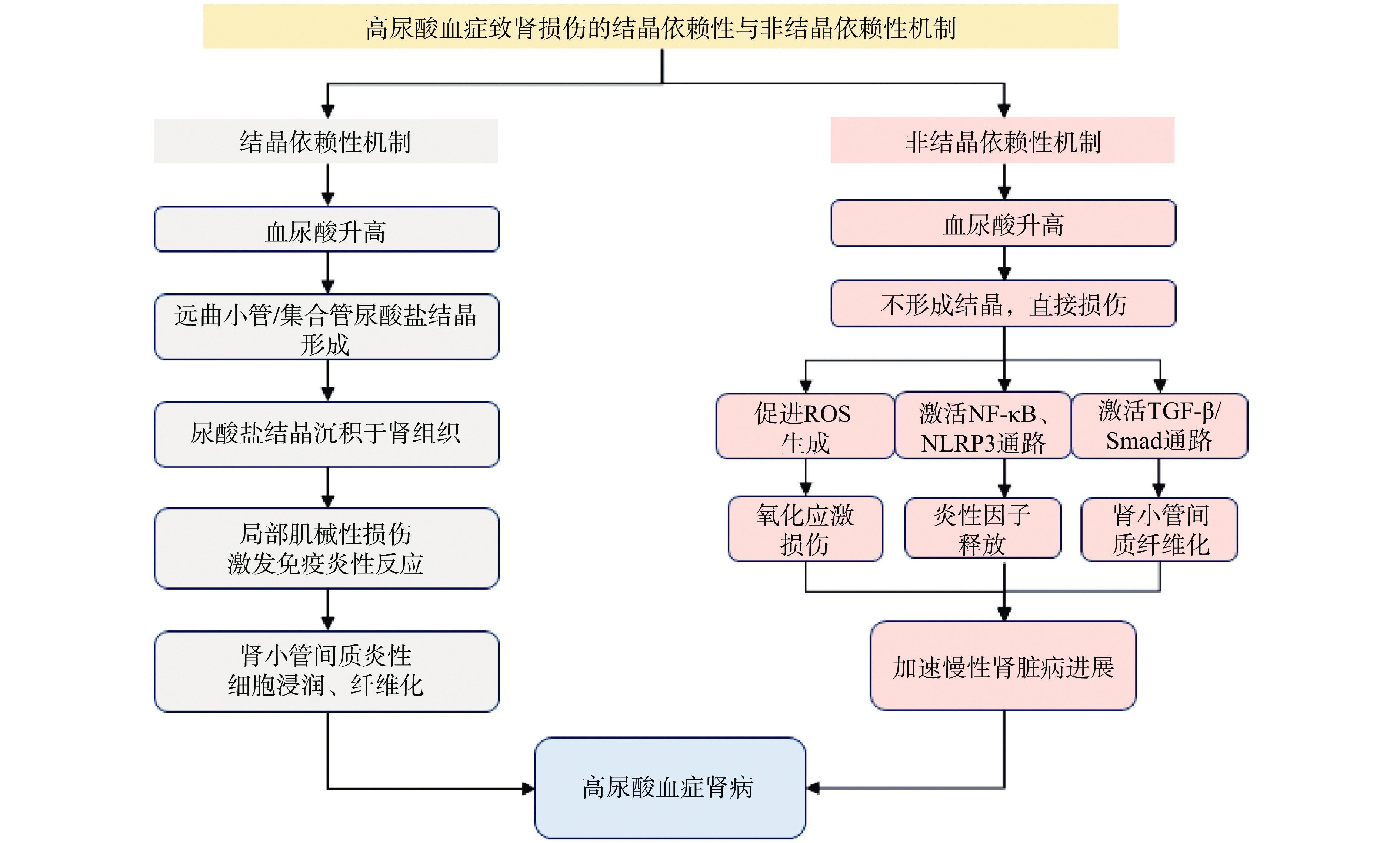 高尿酸血症(HUA)是一种常见的代谢紊乱性疾病,而血清尿酸持续升高则会造成尿酸相关性肾功能损伤。本文对具有降尿酸及肾保护作用的中药复方(如四妙散、痛风宁等)及中药单体组分(包括生物碱类、黄酮类、多糖类等)进行了归纳,并对其可能作用机制进行系统综述,包括调节尿酸转运蛋白(有机阴离子转运体3、尿酸转运体1、葡萄糖转运体9等)机制,抑制炎性反应作用(调控NF-κB等相关信号通路),抗氧化应激(调节线粒体功能相关通路,促进抗氧化酶的生成),减少肾纤维化(PI3K/AKT等相关通路)改善肾组织损伤等。目前相关研究存在作用机制尚未完全明确、临床方向研究不足等问题。因此,未来研究应深入挖掘中医药资源,着重探讨兼具降尿酸与肾保护的作用机制及应用潜力,为HUA肾保护的治疗提供新的思路和方法。