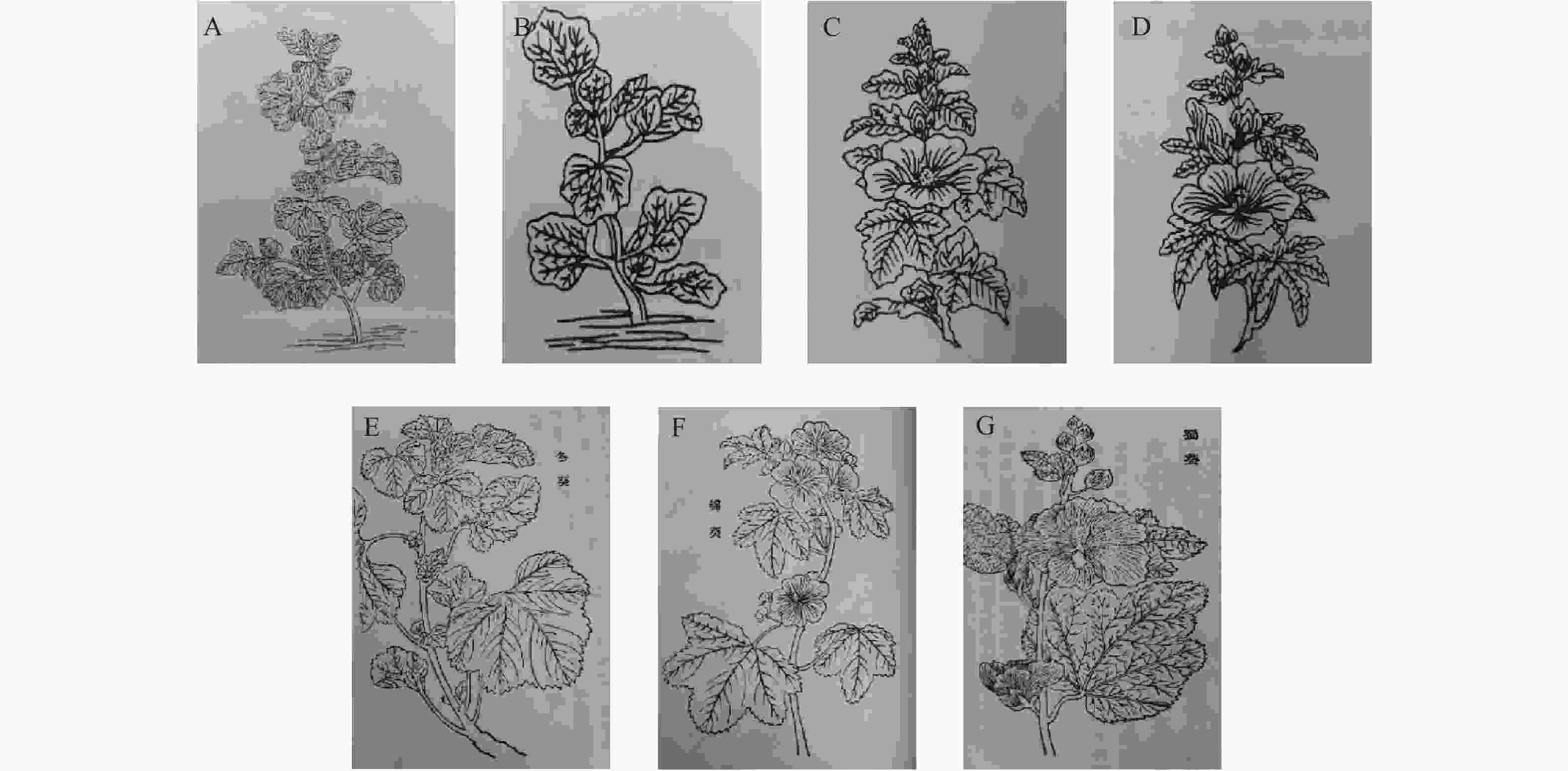1 mm,具纵槽种子扁圆,肾脏形 宋代唐慎微所著《重修政和经史证类备用本草》中将冬葵列为菜部上品,并附有冬葵图[13]。对照目前植物分类,冬葵M. verticillata L.的外观及叶片细节与古本草中冬葵最为相似。图1为历代本草中所载冬葵及相似植物图片。崔熙等 [14]参考史料及文献考证,认为确认冬葵本草,除了外形、产地、可食用等条件外,还应当考虑药用功效,依据中国植物志中对冬葵外观及野葵药用价值的描述,认为古本草中的冬葵应当是冬葵M. crispa L.或野葵M. verticillata L.。