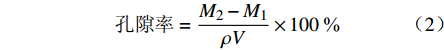 $$ {\text{孔隙率}}=\frac{{M}_{2}-{M}_{1}}{\rho V}\times 100\;\text{%}$$ 其中,M1为干SPH-IPN质量(g);M2为乙醇浸泡后的SPH-IPN质量(g);ρ为乙醇密度(g/cm),V为SPH-IPN体积(cm3,以游标卡尺测量长方体SPH-IPN的长、宽、高后计算而得)。