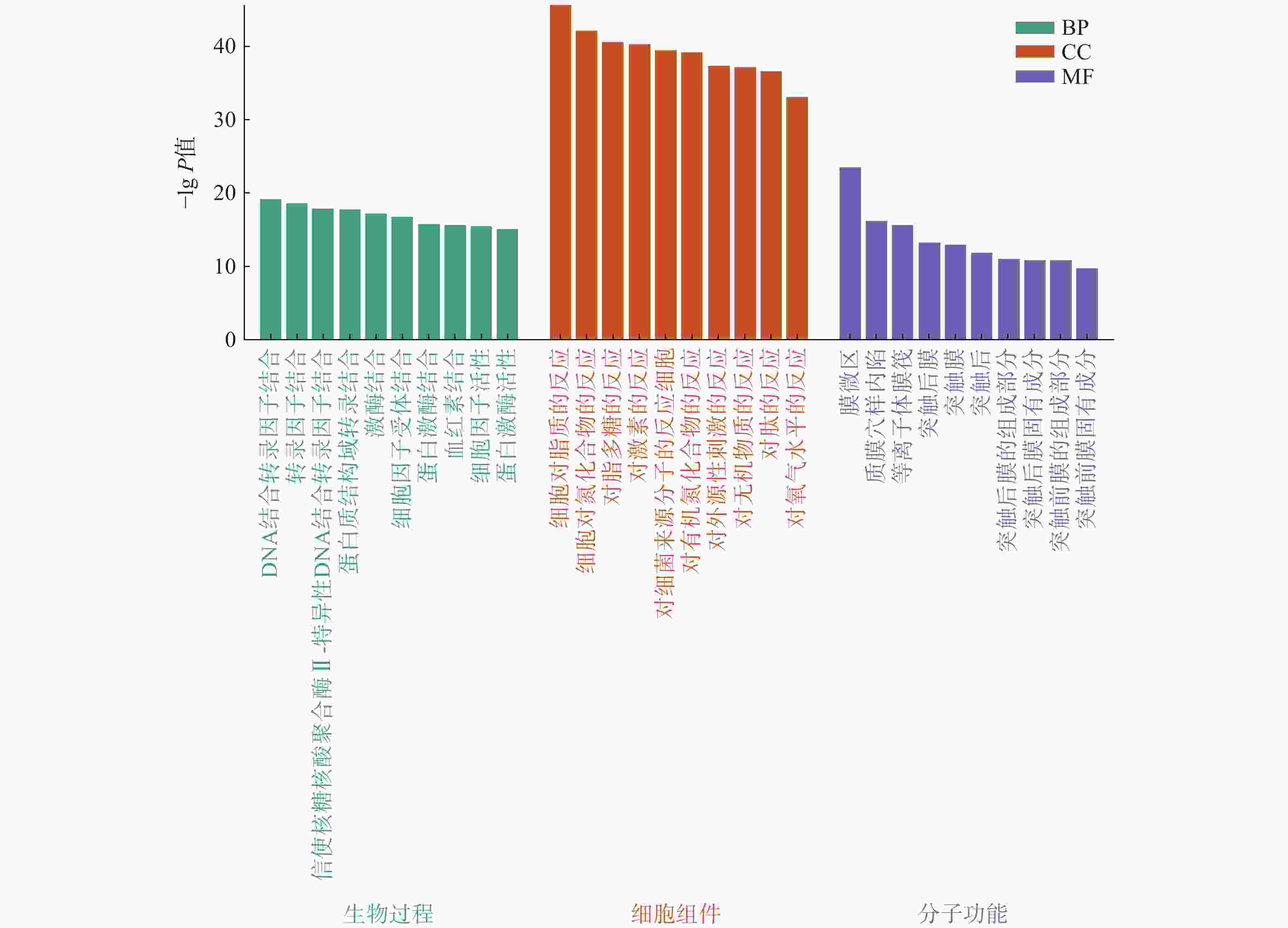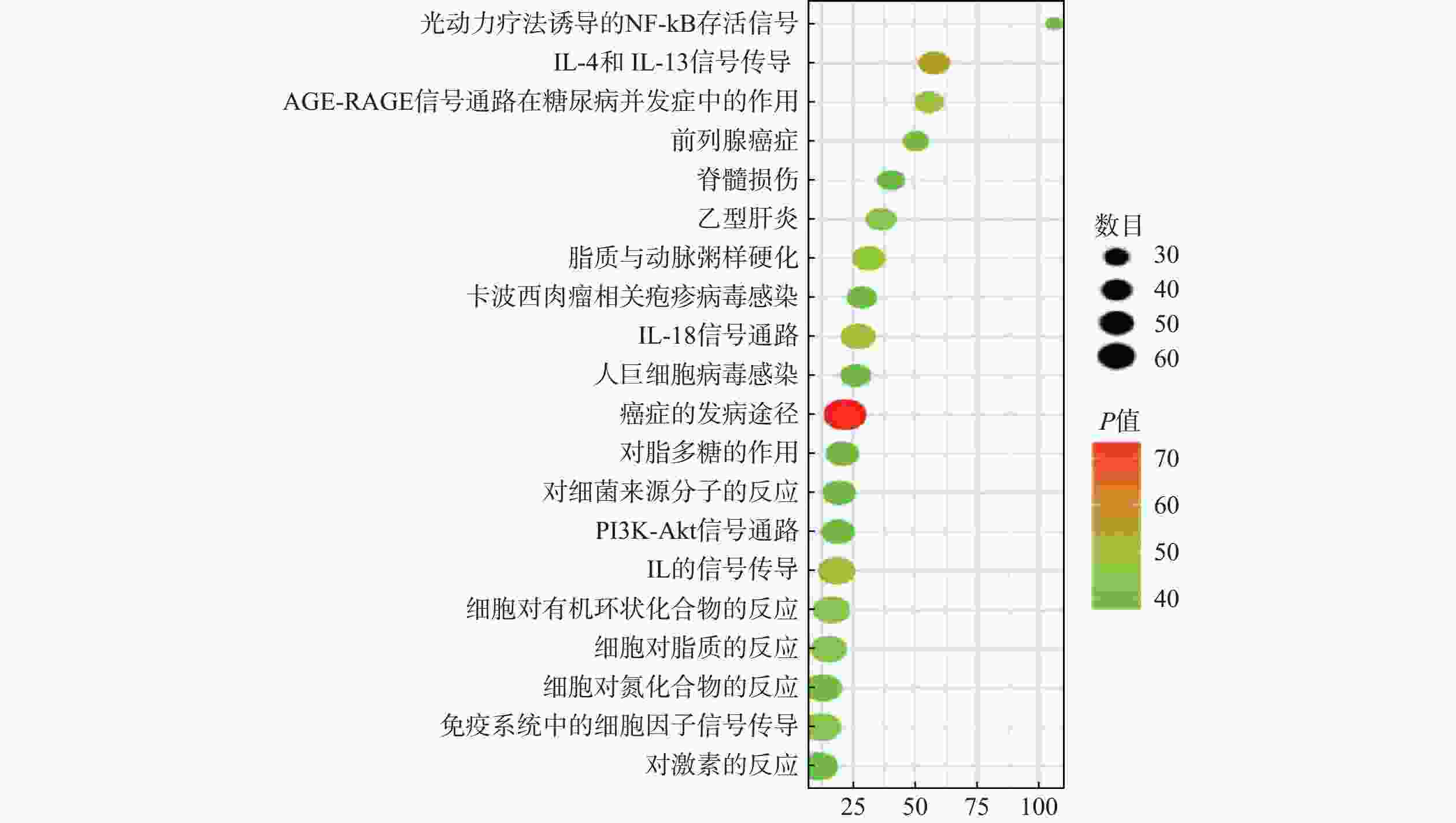 利用Metascape数据库(https://metascape.org/gp/index.html#/main/step1)进行GO和KEGG通路富集分析。将获取的GO功能富集分析(前10条)和KEGG通路分析(前20条)信息分别绘制出富集气泡图和柱状图[13]。