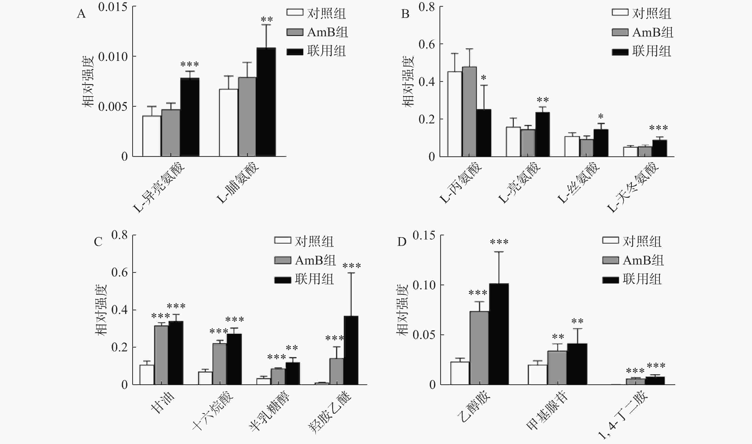 表 1  对照组、AmB组、联用组差异代谢物鉴别结果