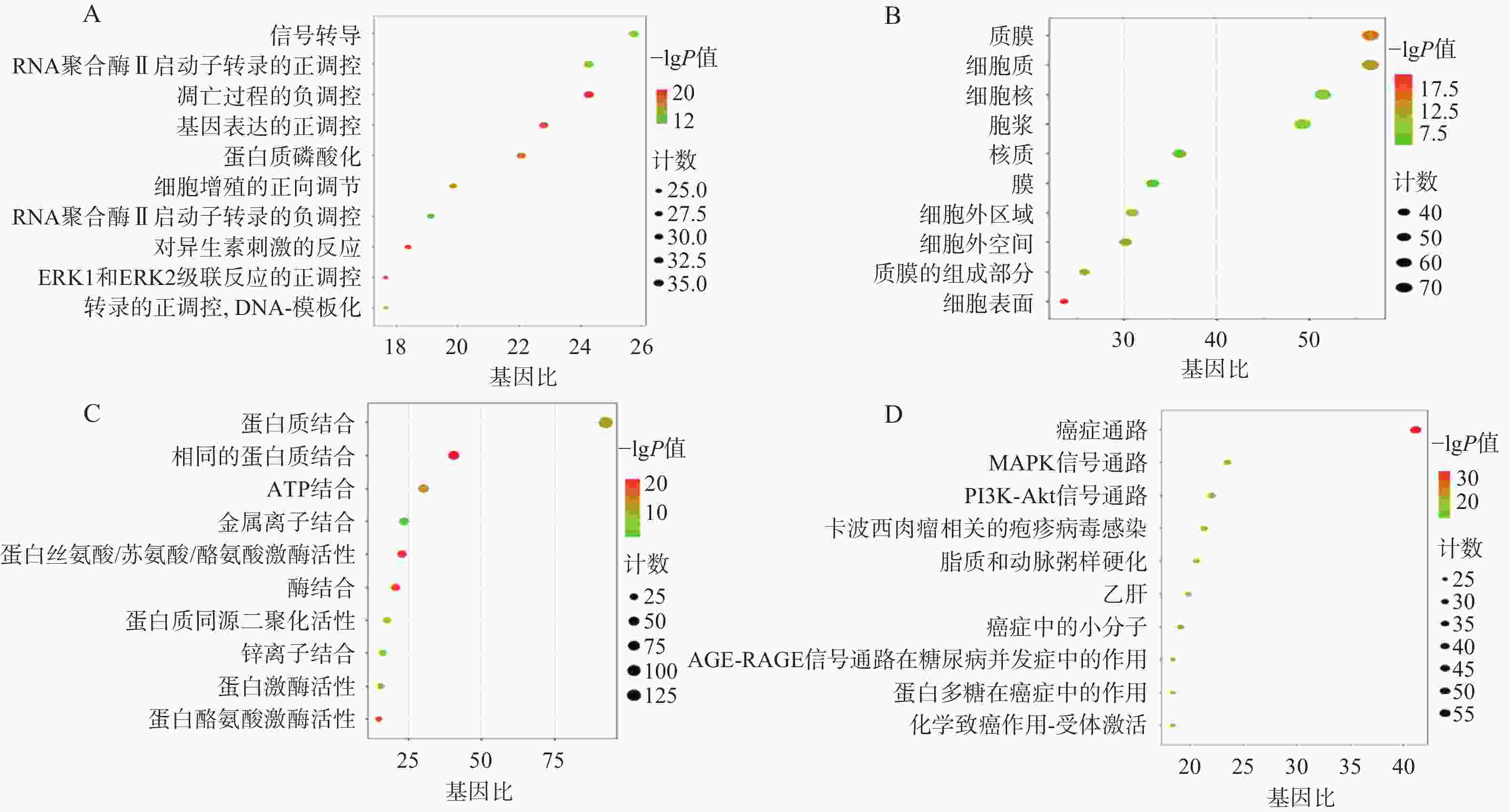 A. 生物过程;B. 细胞组分;C. 分子功能;D. KEGG通路
