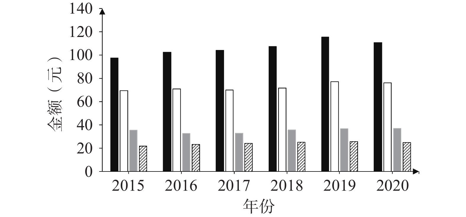 ATC小类 2014年 2015年 2016年 2017年 2018年 2019年 2020年 集落刺激因子 0.24 0.17 0.13 0.29 1.82 1.05 2.91 VEGF/VEGFR抑制剂 0.00 0.00 0.33 3.28 7.18 7.11 2.61 其他免疫刺激剂 1.76 0.99 0.95 0.72 1.30 1.58 2.58 紫杉烷类 1.12 0.39 0.43 0.73 0.98 2.08 2.30 EGFR酪氨酸激酶抑制剂 0.30 0.04 0.00 0.04 1.02 1.27 2.20 铂化合物类 1.06 1.23 1.37 2.60 2.23 3.32 1.26 白介素类 0.70 0.94 0.77 0.80 0.78 0.92 1.20 其他蛋白激酶抑制剂 0.00 0.00 0.00 0.01 0.00 0.57 1.20 ALK抑制剂 0.00 0.00 0.00 0.00 0.00 0.00 0.45 HER2抑制剂 0.00 0.00 0.00 0.00 0.00 0.00 0.39 鬼臼毒素衍生物 0.09 0.08 0.13 0.12 0.13 0.21 0.36 其他抗肿瘤药 0.20 0.16 0.29 0.66 0.59 0.02 0.18 嘧啶类似药 0.04 0.02 0.05 0.01 0.11 0.23 0.15 PD-1/PD-L1抑制剂 0.00 0.00 0.00 0.00 0.00 0.00 0.15 蒽环类及相关物质 0.00 0.01 0.01 0.03 0.03 0.06 0.06 叶酸类似药 0.05 0.02 0.02 0.06 0.08 0.07 0.05 BCR-ABL酪氨酸激酶抑制剂 0.00 0.00 0.00 0.01 0.00 0.00 0.03 氮芥类似药类 0.03 0.02 0.00 0.02 0.00 0.04 0.02 芳香化酶抑制剂 0.01 0.13 0.02 0.03 0.03 0.11 0.02 选择性免疫抑制剂 0.00 0.00 0.01 0.00 0.00 0.04 0.01 其他免疫抑制剂 0.00 0.00 0.00 0.02 0.00 0.01 0.01 抗雌激素类 0.00 0.00 0.06 0.00 0.00 0.00 0.00 分化20族(CD20)抑制剂 0.00 0.02 0.00 0.02 0.01 0.00 0.00 促性腺激素释放激素的类似药 0.00 0.00 0.00 0.03 0.02 0.00 0.00 其他植物生物碱和其它天然药 0.00 0.00 0.00 0.00 0.00 0.00 0.00 其他烷化剂 0.01 0.00 0.00 0.00 0.00 0.00 0.00 拓扑异构酶Ⅰ抑制剂 0.19 0.19 0.03 0.27 0.04 0.04 0.00 亚硝基脲类 0.00 0.00 0.00 0.00 0.00 0.08 0.00 长春花碱及类似药 0.00 0.01 0.00 0.02 0.01 0.00 0.00 TNF - α抑制剂 0.00 0.00 0.00 0.00 0.00 0.01 0.00 注:VEGF/VEGFR:血管内皮生长因子/血管内皮生长因子受体;EGFR:表皮生长因子受体;ALK:间变性淋巴瘤激酶;HER2:人表皮生长因子受体2;PD-1/PD-L1程序性死亡受体1/细胞程序性死亡配体1;TNF-α:肿瘤坏死因子α。 表 5 2014−2020年肺癌治疗药品(前20)人均DDDs变化情况