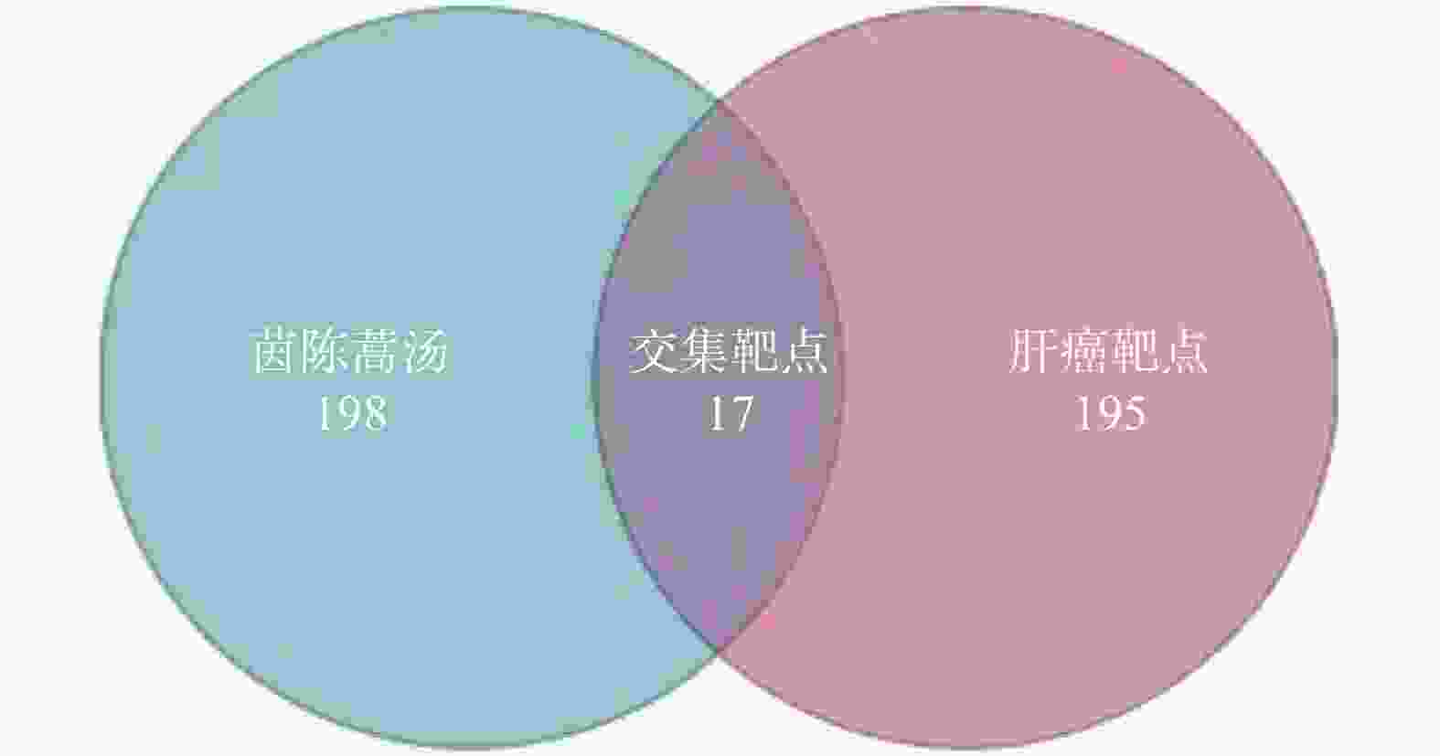 图  3  茵陈蒿汤潜在作用靶点与肝癌靶点交集的韦恩图