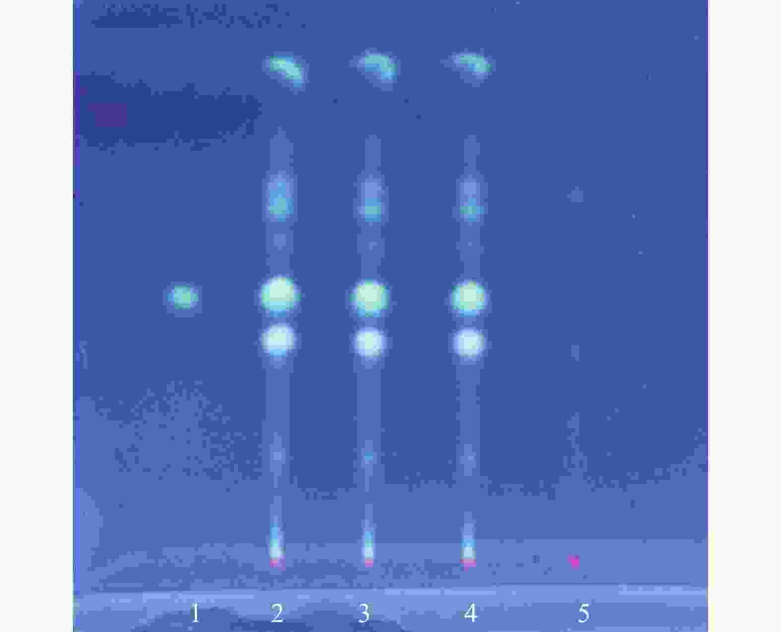 1.蒙花苷对照品;2-4. 眼罩的中药粉末(批号依次为20230314、20230410、20230518);5.缺密蒙花阴性样品。