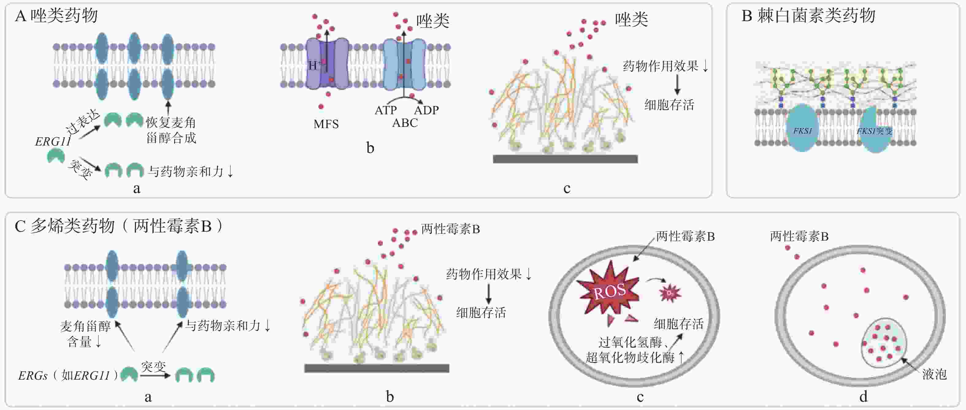 • 图  1  病原真菌对抗真菌药物耐药机制示意图