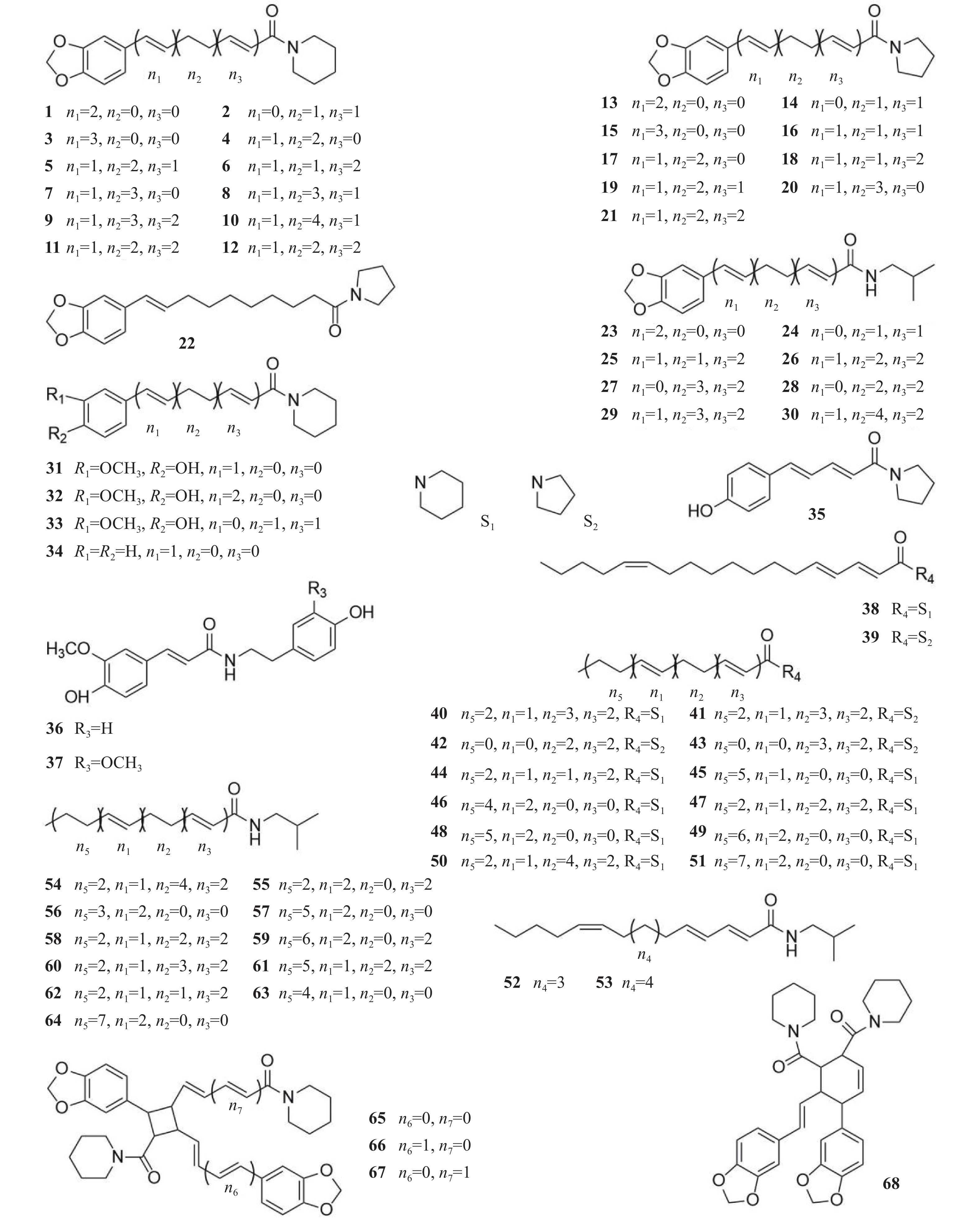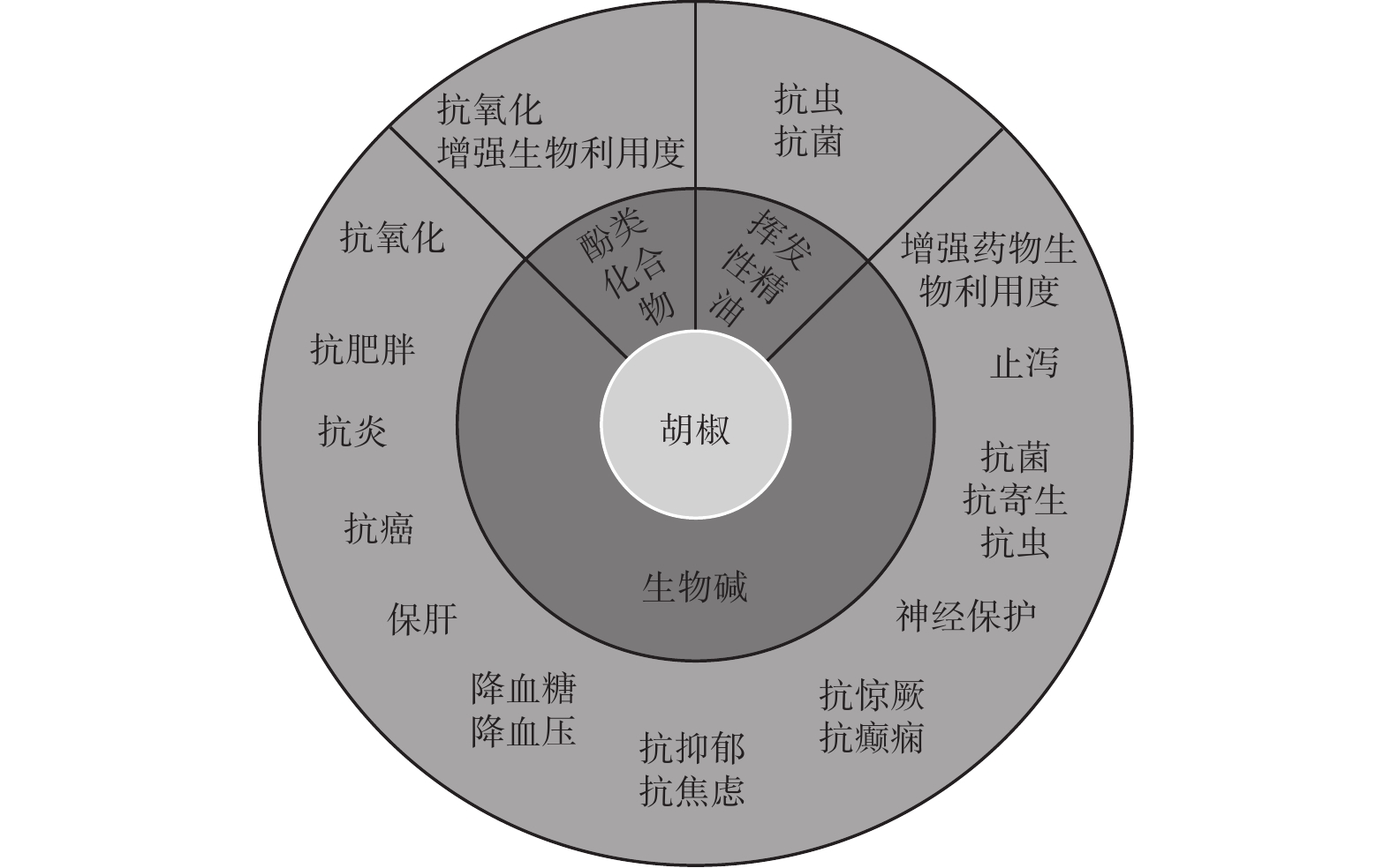 Piper nigrum L. is an evergreen climbing vine, which belongs to the genus Piperia in the Piperaceae family. Piper nigrum L., which known as the “king of spices”, is used as both food and medicine. The main active substances in Piper nigrum L. are alkaloids mainly composed of amides, and essential oil, as well as phenolic compounds. In this paper, the chemical compositions, especially amide alkaloids, and their biological activities of Piper nigrum L. were summarized. These studies showed that Piper nigrum L., as a medicinal and food plant, had a wide range of biological activities and was deserved further research and in-depth utilization.