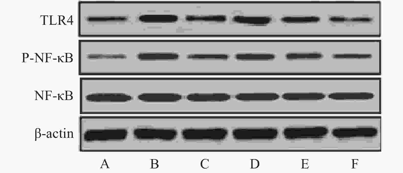 组别 TLR4/β-actin NF-κB/β-actin p-NF-κB/β-actin p-NF-κB/NF-κB 假手术组 0.08±0.02 0.83±0.15 0.10±0.02 0.12±0.03 模型组 1.03±0.21* 0.78±0.14 0.81±0.15* 1.04±0.22* 丁苯酞组 0.20±0.04▲ 0.84±0.15 0.29±0.06▲ 0.35±0.08▲ 雷公藤甲素低剂量组 0.87±0.16 0.79±0.16 0.68±0.13 0.86±0.18 雷公藤甲素中剂量组 0.65±0.13▲ 0.78±0.15 0.35±0.07▲ 0.45±0.10▲ 雷公藤甲素高剂量组 0.16±0.03▲# 0.74±0.14 0.14±0.03▲# 0.19±0.04▲# *P<0.05,与假手术组比较;#P<0.05,与丁苯酞组比较;▲P<0.05,与模型组比较。 -