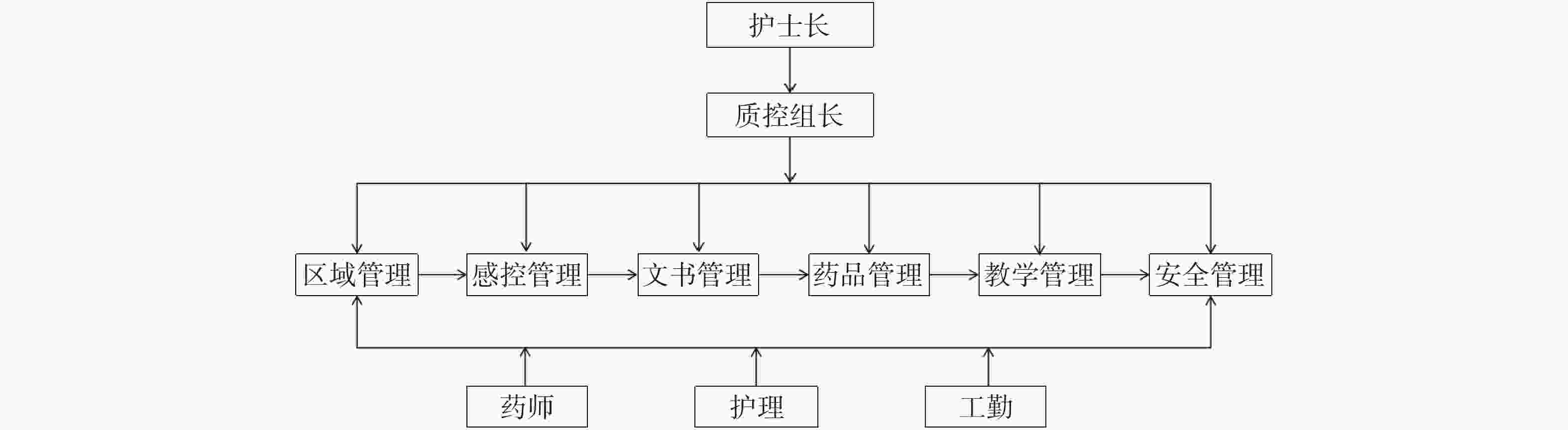 每个小组配备4~5名成员,成员构成实现了药学、护理、工勤等各岗位人员的全员覆盖,确保质量管理工作渗透到各个工作环节。最终形成了职责明确、层次分明的全流程质量三级管理架构——护士长统筹全局、质量组长整体把控、各质量小组长及成员分工落实,有效保障了PIVAS从药品接收、调配到发放等全流程的质量安全。具体构架如图1所示。